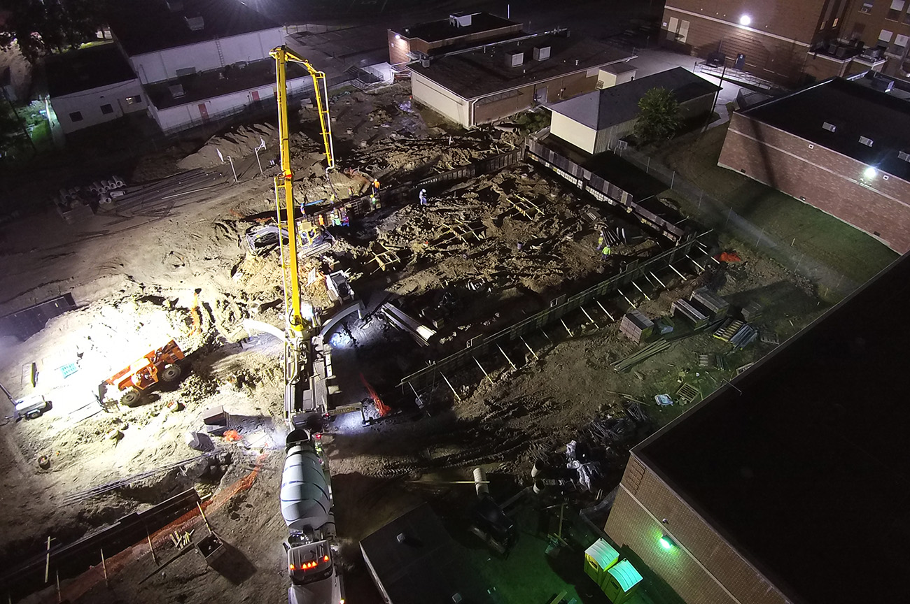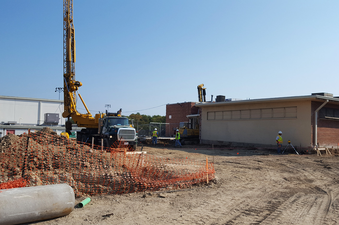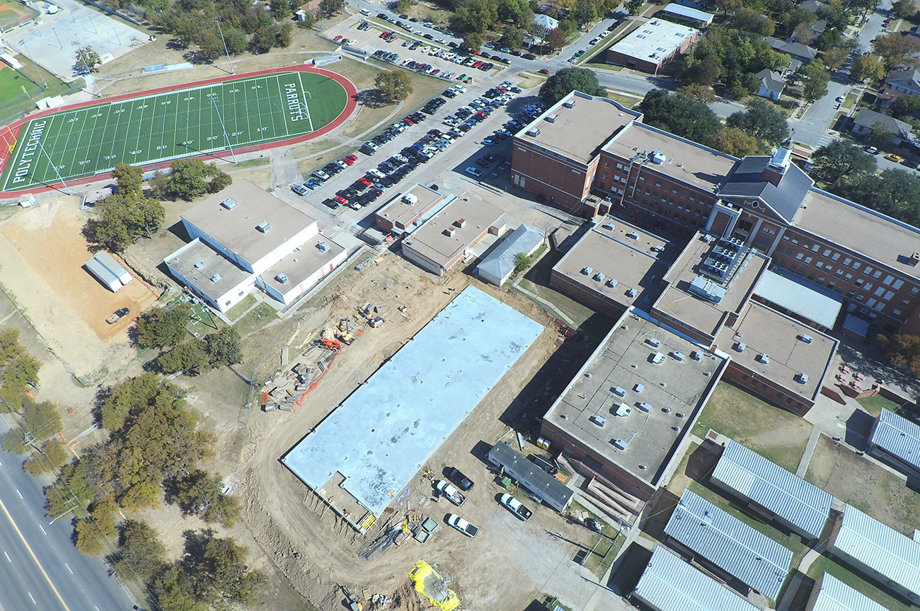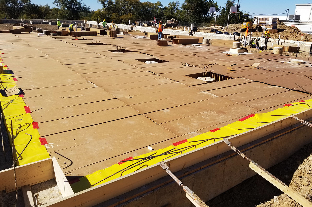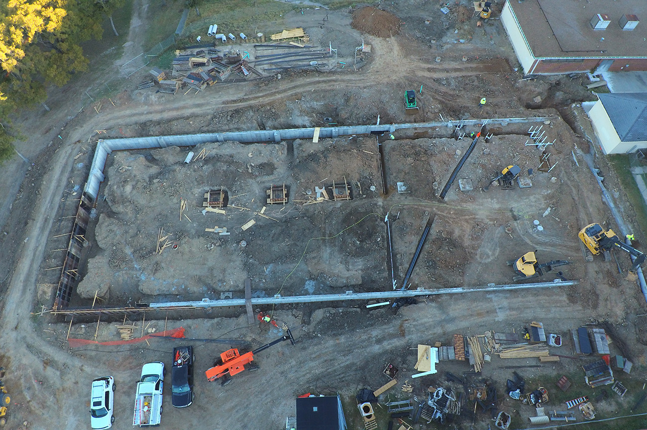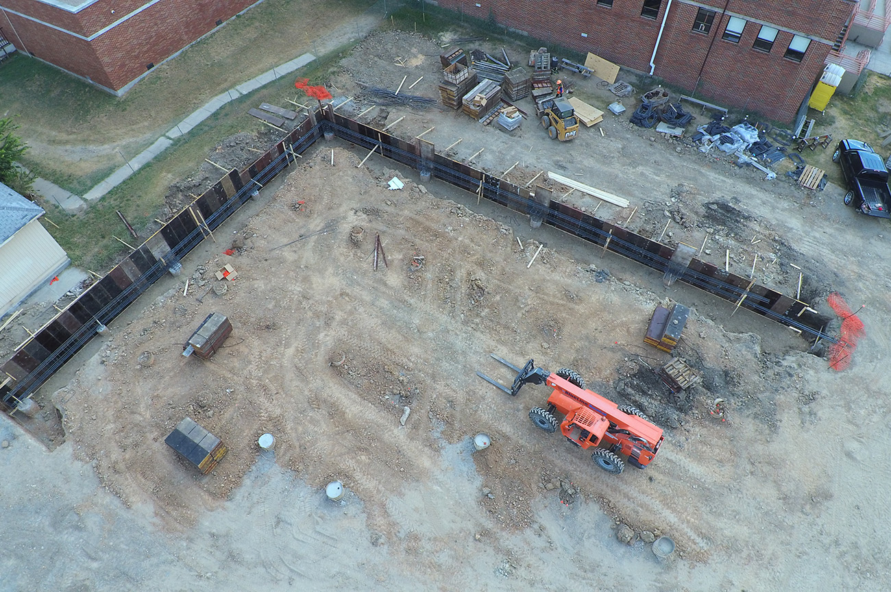 15,500sqft of classroom addition. (73) piers, formed grade beams up to 6’ depth, 10” slab with #6’s @ 6” centers double mat top & btm. 3,100sqft of field house addition. (25) piers and formed to same specifications as the classroom addition.