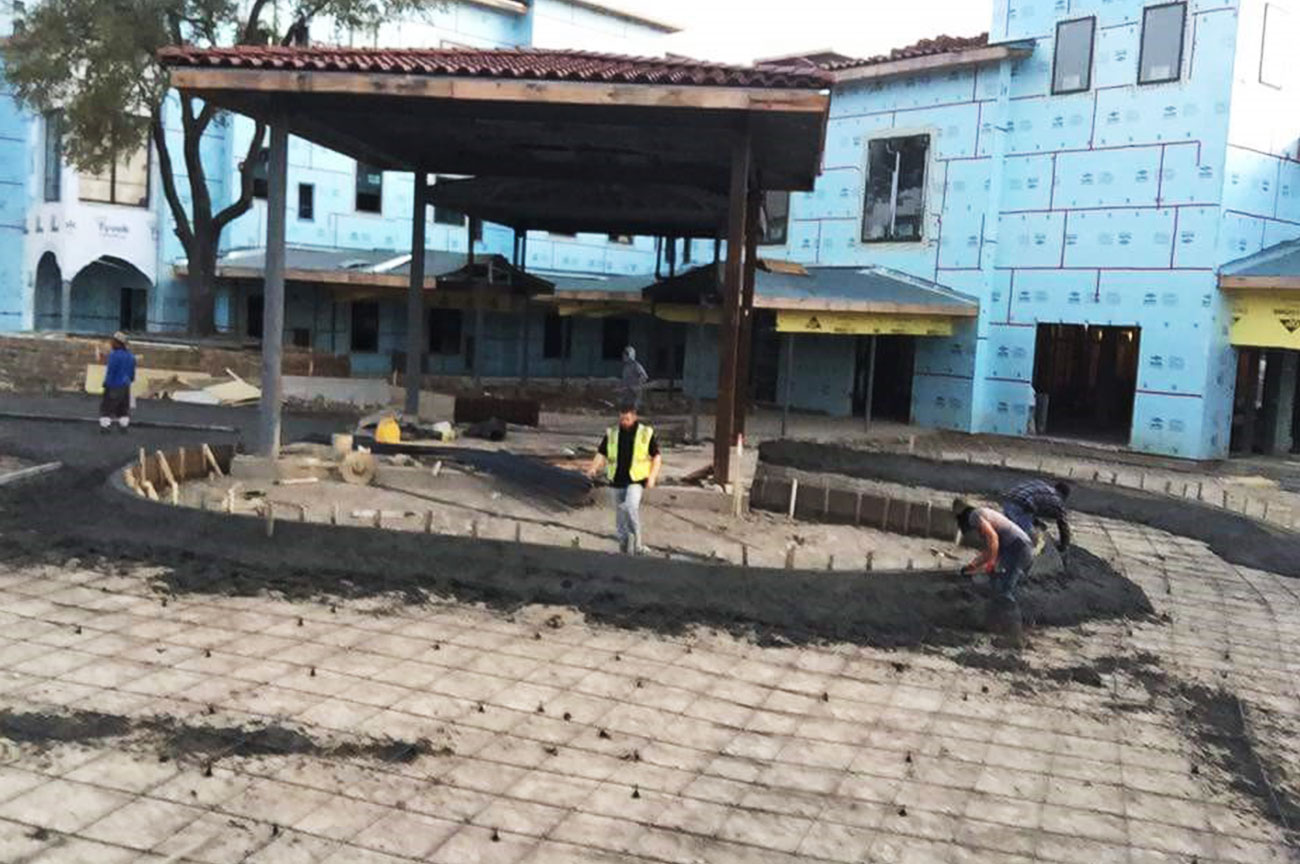 8,500sqft of HES concrete paving, 3 sets of stairs and landings, 2 patios, dumpster pad, (26) light poles, generator pad, junction pad, slab extension, and (26) bathroom recess chip outs.