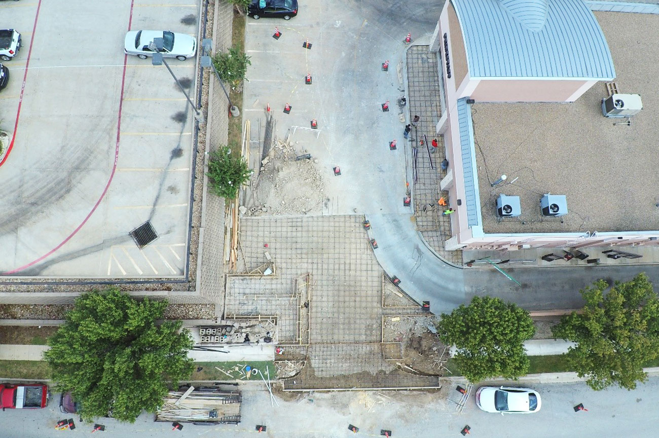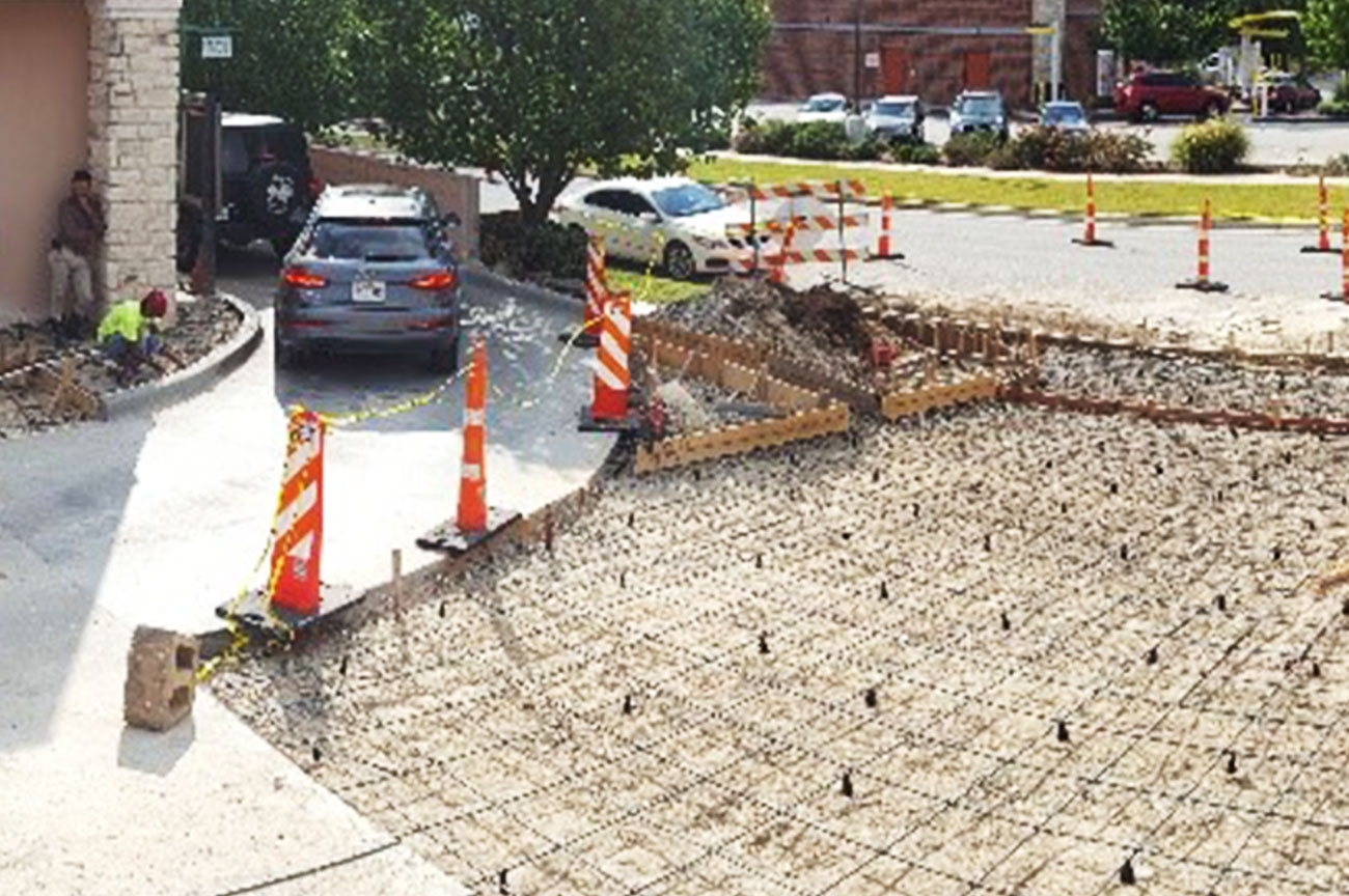 Demo existing retaining wall and sidewalks, haul off, install HES concrete new drive-thru without closing the lane during operations, grade, and install new approach and sidewalks.